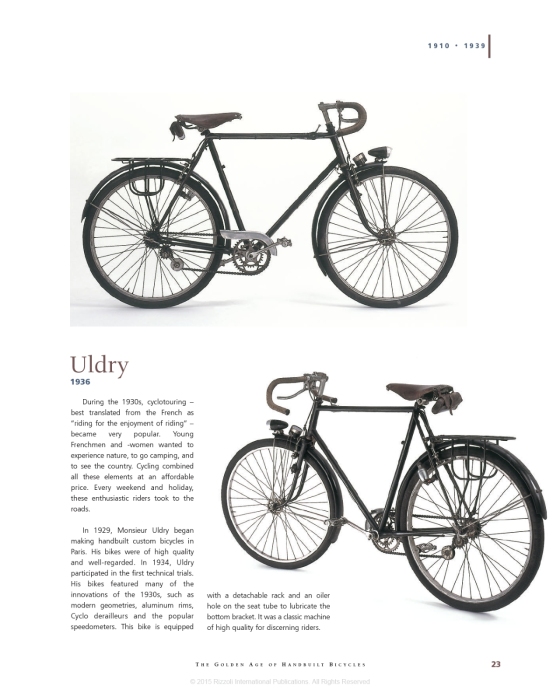 The Golden Age of Handbuilt Bicycles is a celebration of the design history and craftsmanship behind this simple but efficient two-wheeled vehicle. Featuring fifty classic models built by hand, this book unveils the bicycle’s technical evolution within a historical context. Beautifully detailed are early-twentieth-century models with multi-gear systems, mid-century machines where war and postwar economy challenged craft and utility, as well as modern and contemporary bicycles. Featured artisans and brands include La Gauloise, Reyhand, Schulz, Barra, Alex Singer, and René Herse. With brilliant full-color images of each model and chronological text detailing the craftsmanship that went into producing these elegant machines, this book will appeal to bicycle enthusiasts and to anyone interested in design.