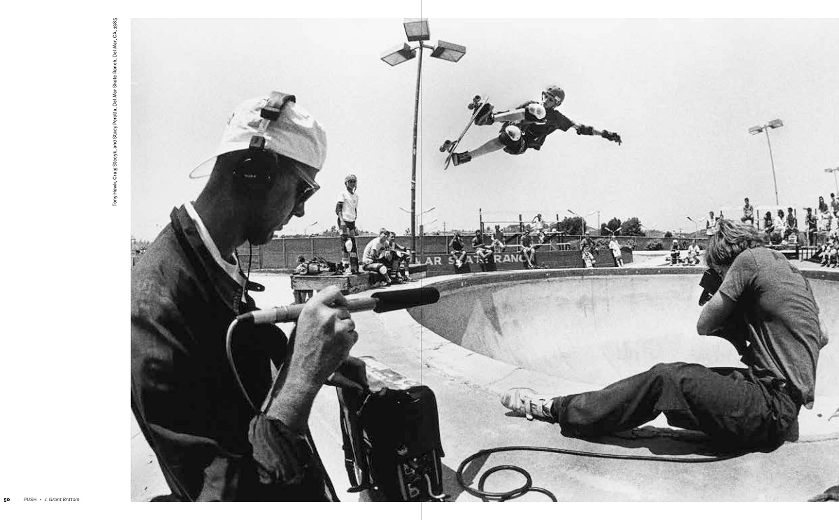 The dynamic images from the analog era found in PUSH demonstrate why Grant Brittain has become one of the most widely-recognized skateboard photographers on the planet. Brittain has been at the epicenter of California skateboarding since landing a job at Del Mar Skate Ranch in 1978. Brittain started shooting Kodachrome at Del Mar in 1979, and within a few years he was submitting photographs to TransWorld Skateboarding magazine, going on to become Photo Editor there shortly thereafter. In 1987, “The Push,” a photo of Tod Swank made the cover of TransWorld, becoming one of the most recognizable photos in all of skateboarding. J Grant Brittain has mentored dozens of budding photographers while achieving the status of icon to skateboarders around the world. It’s high time the world gets a chance to see this collection of his work from the 1980s that has inspired so many. PUSH includes a foreword by Tony Hawk, an introduction by Miki Vuckovich and a fold-out timeline by Garry Scott Davis.