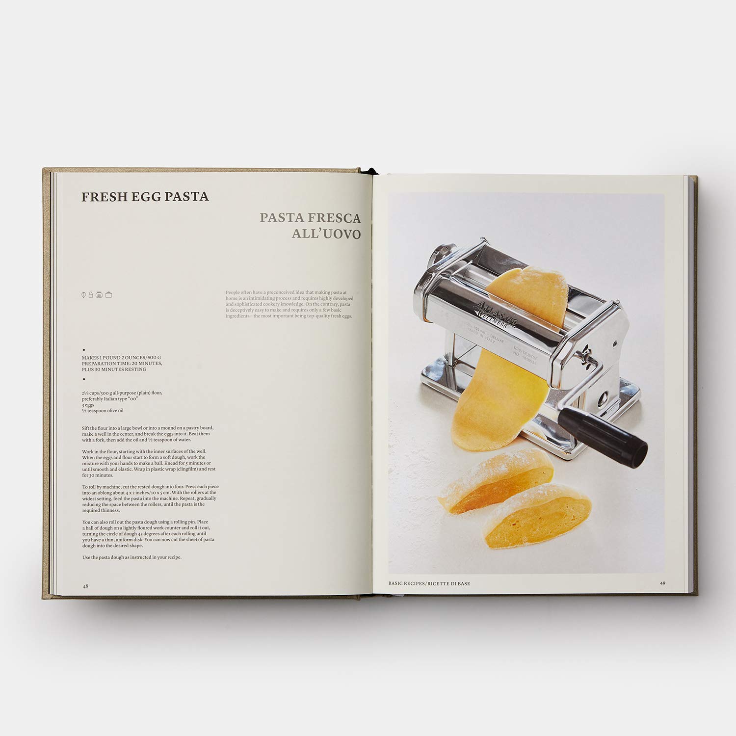 Divided into eleven color-coded chapters by course, The Silver Spoon is a feat of design as well as content. Chapters include: Sauces, Marinades and Flavored Butters, Antipasti, Appetizers and Pizzas, First Courses, Eggs, Vegetles, Fish and Shellfish, Meat, Poultry, Game, Cheese, and Desserts. It covers everything from coveted authentic sauces and marinades to irresistible dishes such as Penne Rigate with Artichokes, Ricotta and Spinach Gnocchi, Tuscan Minestrone, Meatballs in Brandy, Bresaola with Corn Salad, Pizza Napoletana, Fried Mozzarella Sandwiches and Carpaccio Cipriani.